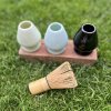 Užijte si přípravu čaje matcha tradičním způsobem, pomocí ručně vyrobených nástrojů z bambusu. Před každým rozmícháním, metličku nejprve na chvilku namočte do připravené 70 stupňové vody, bude se Vám s ní lépe míchat.