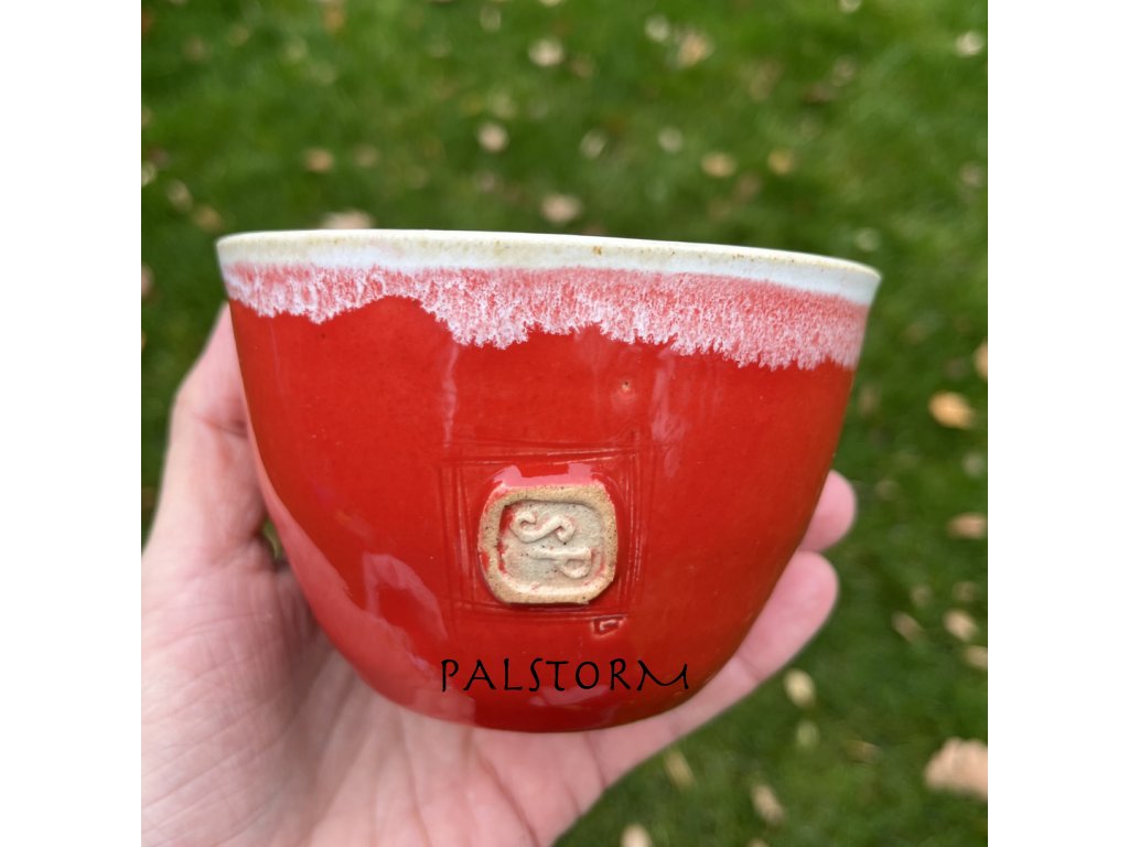 Originální keramická miska na matchu z české dílny v krásné červené barvě.